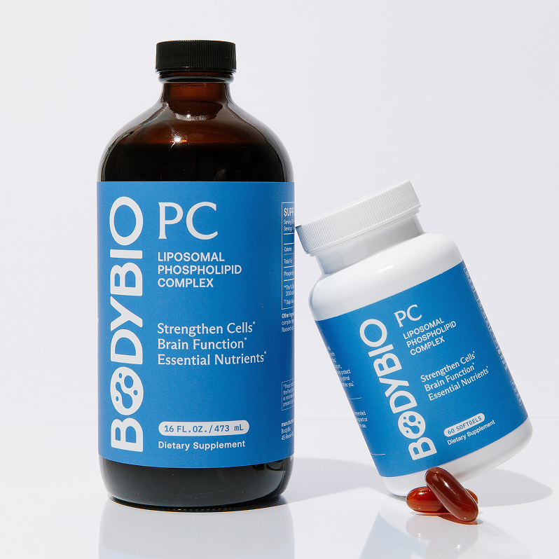 BodyBio PC — a pure liposomal phospholipid complex — provides the building blocks of your cell membranes, repairing and protecting each of your 40 trillion-plus cells. Aging and toxin exposure cause your cells to break down, and phospholipids are critical to rebuild and maintain their health from the brain to the gut and everywhere in between.